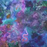 Acrylverf op linnen met herfstkleuren, geïnspireerd door een wandeling in het bos. Intuïtief / abstract schilderij. Opgebouwd uit diverse lagen verf met een dep techniek.