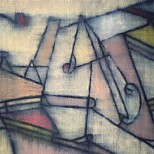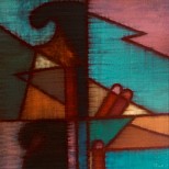 Incl. aluminium lijst formaaLeolibpis - drieklank in olieverf op canvas, formaat 100x100cm, 1999