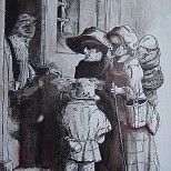 Gewassen pentekening op aqurelpapier en ingelijst met passe partout en glas. Buitenmaat 40 x 50 cm.