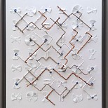 Abstact Artwork. Geometric constructive art. Mixed media. Made with home and handmade woodflakes, some rope, acryl and varnish. Including 3 frames. Formaat als drieluik circa 185x55x8cm (per stuk: 55x55x8xm). Ook los te koop (a 975,00 p.st). Kom gerust eerst kijken in Waddinxveen!