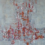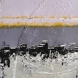 Rustig, doch kleurig schilderij, waarin de felle kleur blauw goed uitkomt.