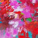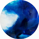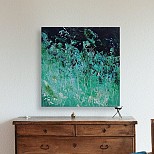 Groot abstract schilderij. In blauw groene tinten. Het doek kan zowel horizontaal als verticaal worden opgehangen.