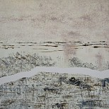A global impression of the painting "LINE-UP (Sixth)" 90x90cm.