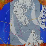 Abstract schilderij, uitgevoerd in Olieverf en Inkt op Linnen.