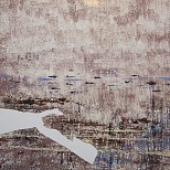 Abstract schilderij, uitgevoerd in Olieverf en Inkt op Linnen.