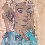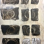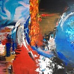 Digitale bewerking van eigen schilderwerk met op de print toevoeging van mixed media.