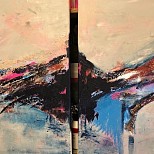 Acryl met coldwax op 50x70 cm doek met zwarte Tonio lijst.