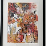 Flowers : acryl op canvas 3D doek, afgewerkt met mat vernis. Ophang systeem aanwezig. Incl. Witte lijst 85x105 cm.