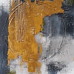 Klein abstract, vrolijk schilderijtje, maten incl. de zwarte baklijst zijn :