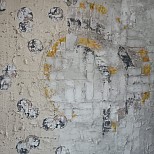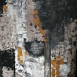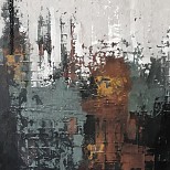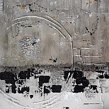 Silver spot is een abstract schilderij in de kleuren grijs, zwart en wit met