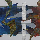 Abstract schilderij uitgevoerd in Olieverf, Inkt en Hars op Linnen
