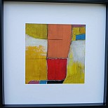 Een licht doek met vrolijke kleuren, vele lagen, mooie lijnen, omringd door grindjes.