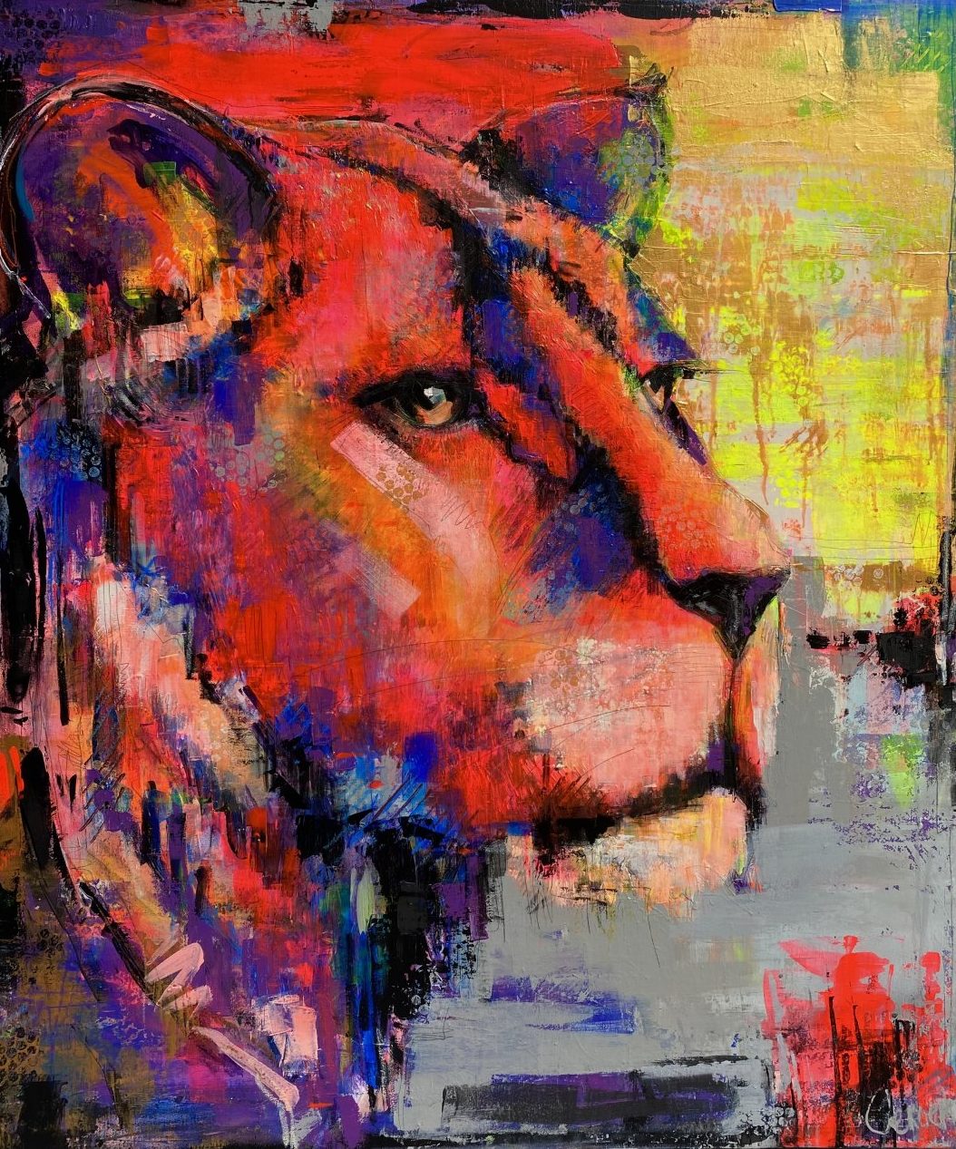 A global impression of the painting "Lioness" 100x120cm.