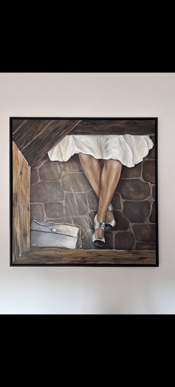Waiting for my friend. Acryl op canvas doek Incl. Zwarte lijst. 105x105cm.