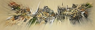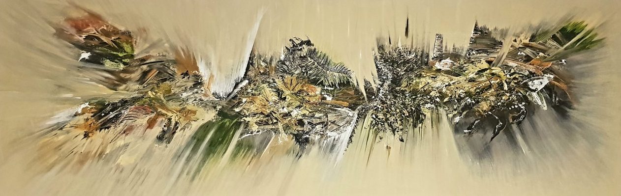 A global impression of the painting "Sunlit Foliage" 150x50cm.