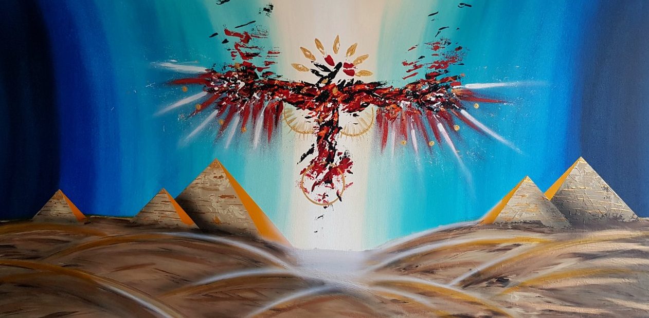 A global impression of the painting "Descent of the Annunaki" 120x60cm.