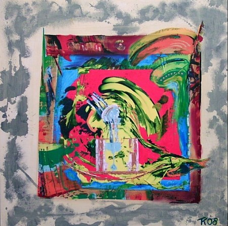A global impression of the painting "Geschiedenis" 100x100cm.