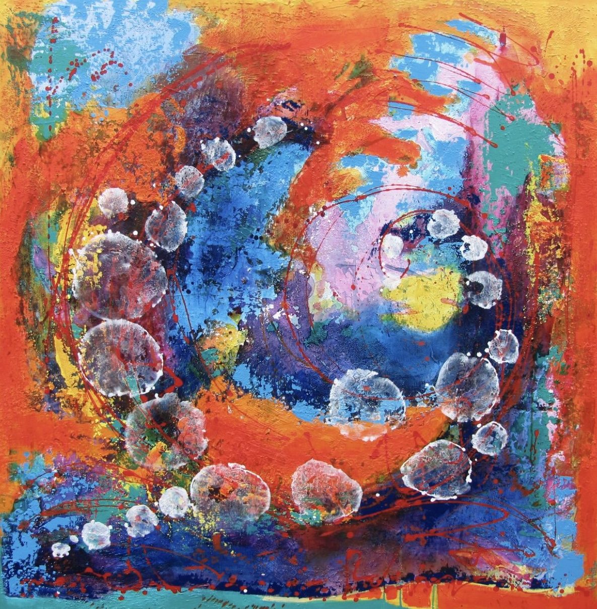 Acryl mixed media 120-120 linnen.