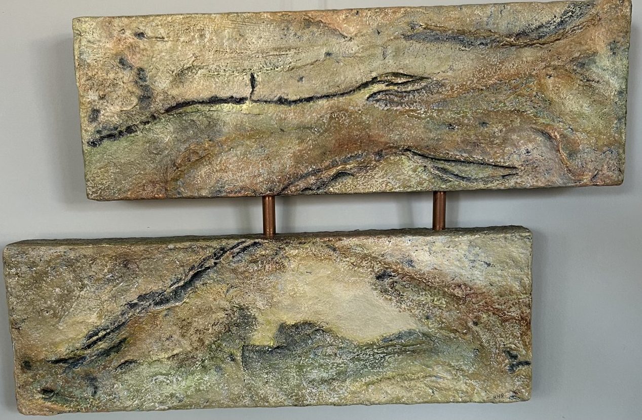 Materie schilderij/ mixed media/ acryl/mdf paneel met koperen verbinding
