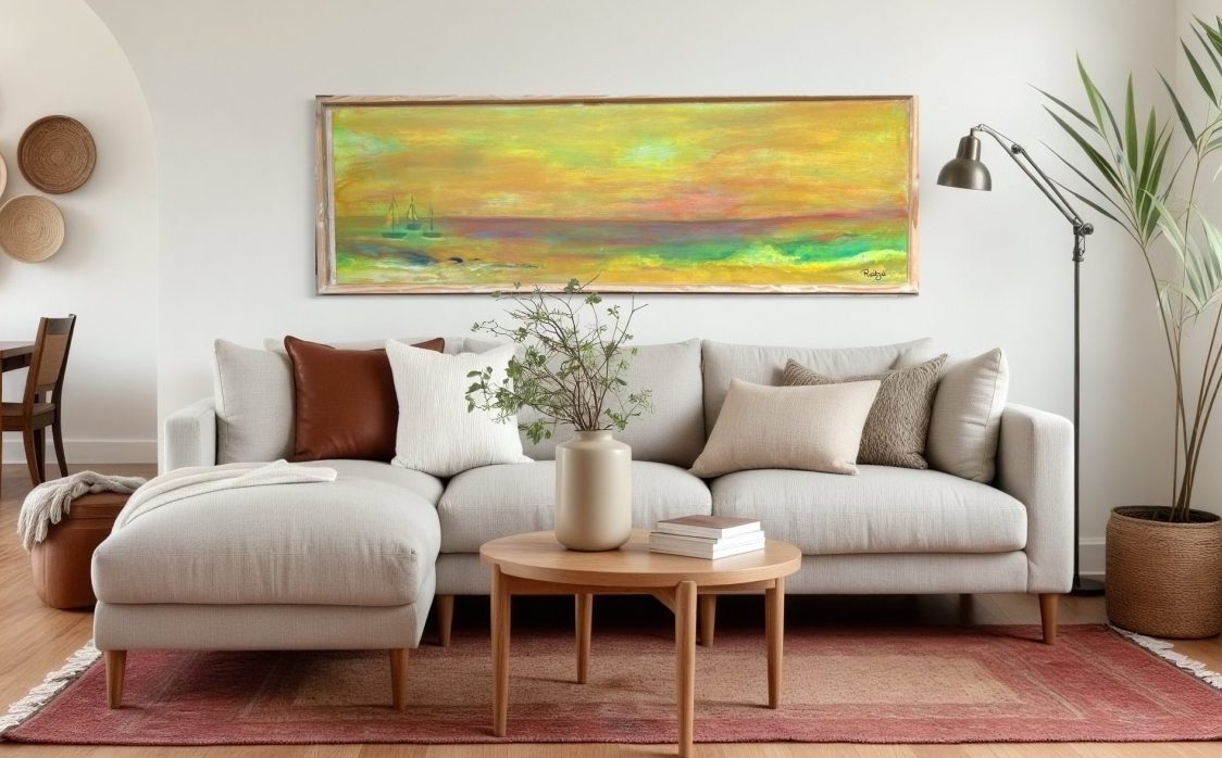 Dit schilderij vangt het moment tussen dag en nacht,